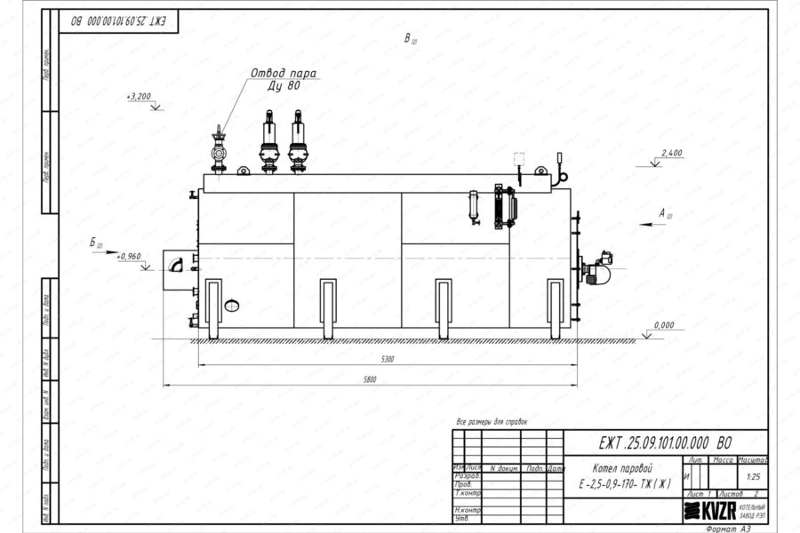 Котлы паровые КВ выпускаются в следующих модификациях:
